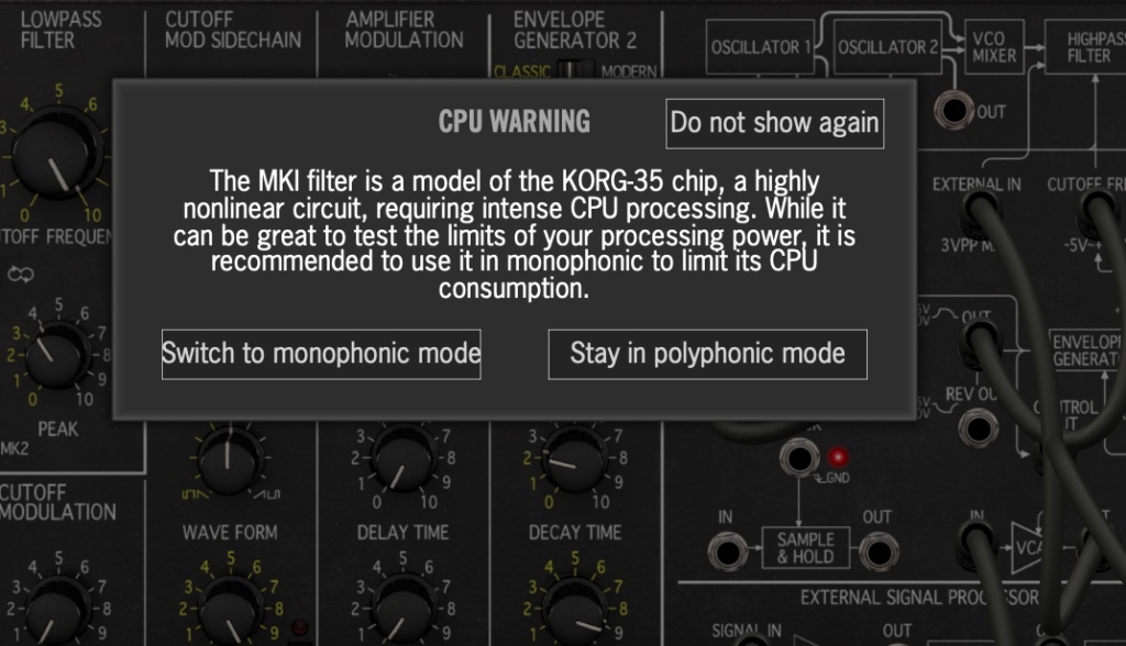 Mk1のスイッチに入れた時にポリフォニックモードで運用するとCPUの負荷がかなり大きいため