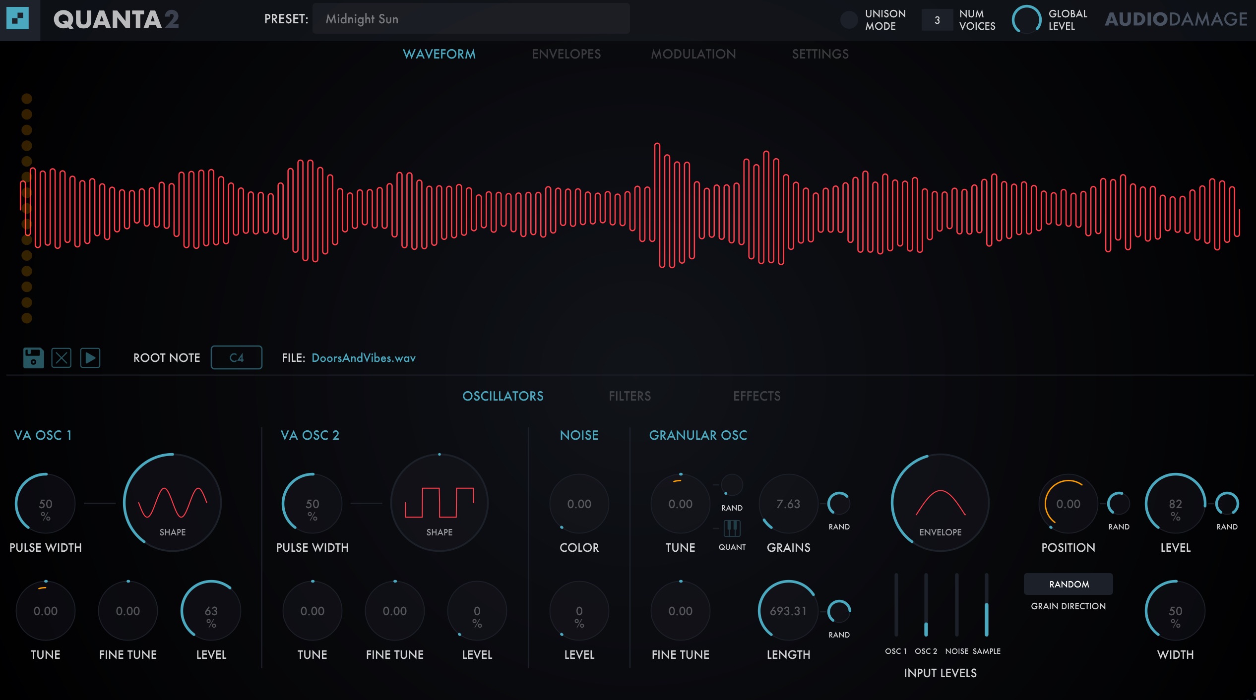 2つのVAオシレーターとグラニュラーオシレーターで音作りをしていきます。
