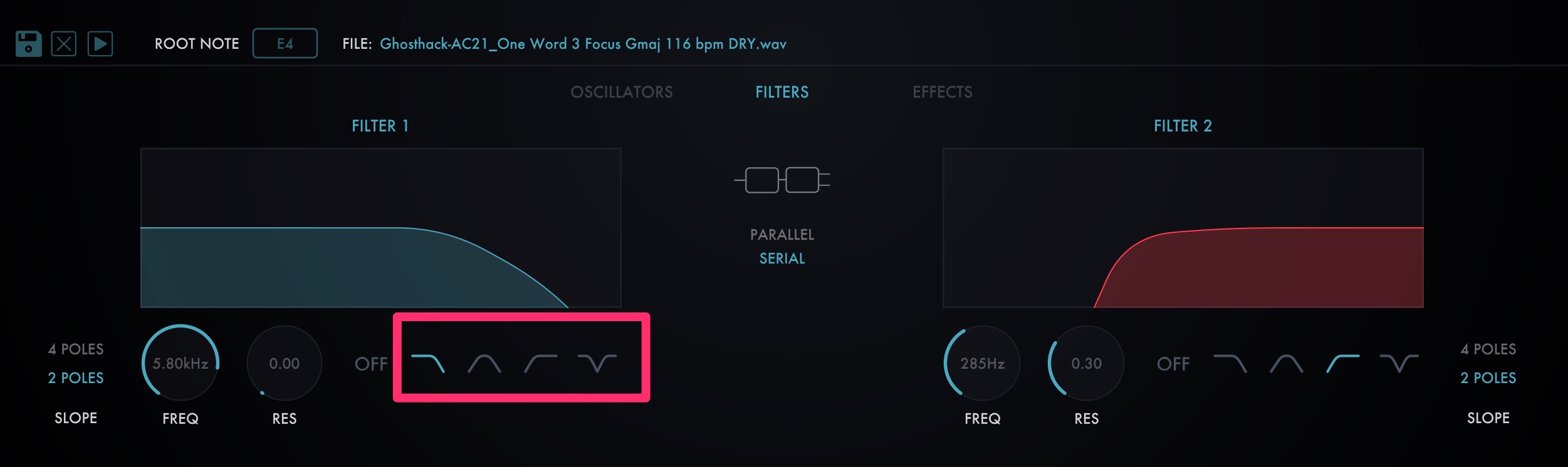 フィルターは直列・並列が選べ2つのフィルターを扱えます。