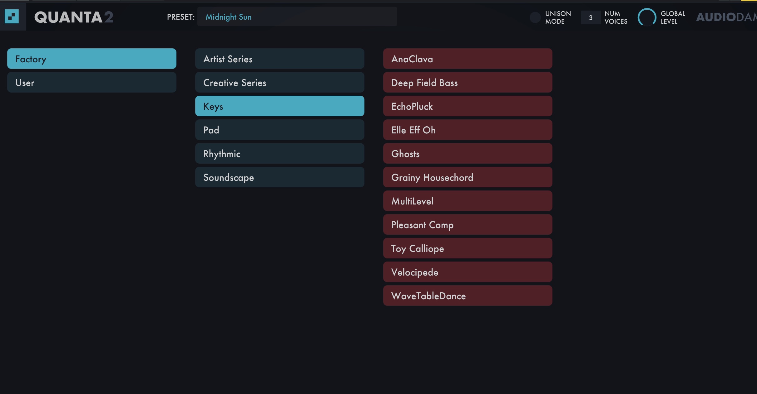 – Quanta 2 には、マーカス フィッシャー、ジョセフ フライオリ、クリス カーター、レッドのデザイナー プリセットを含む、ファクトリー
