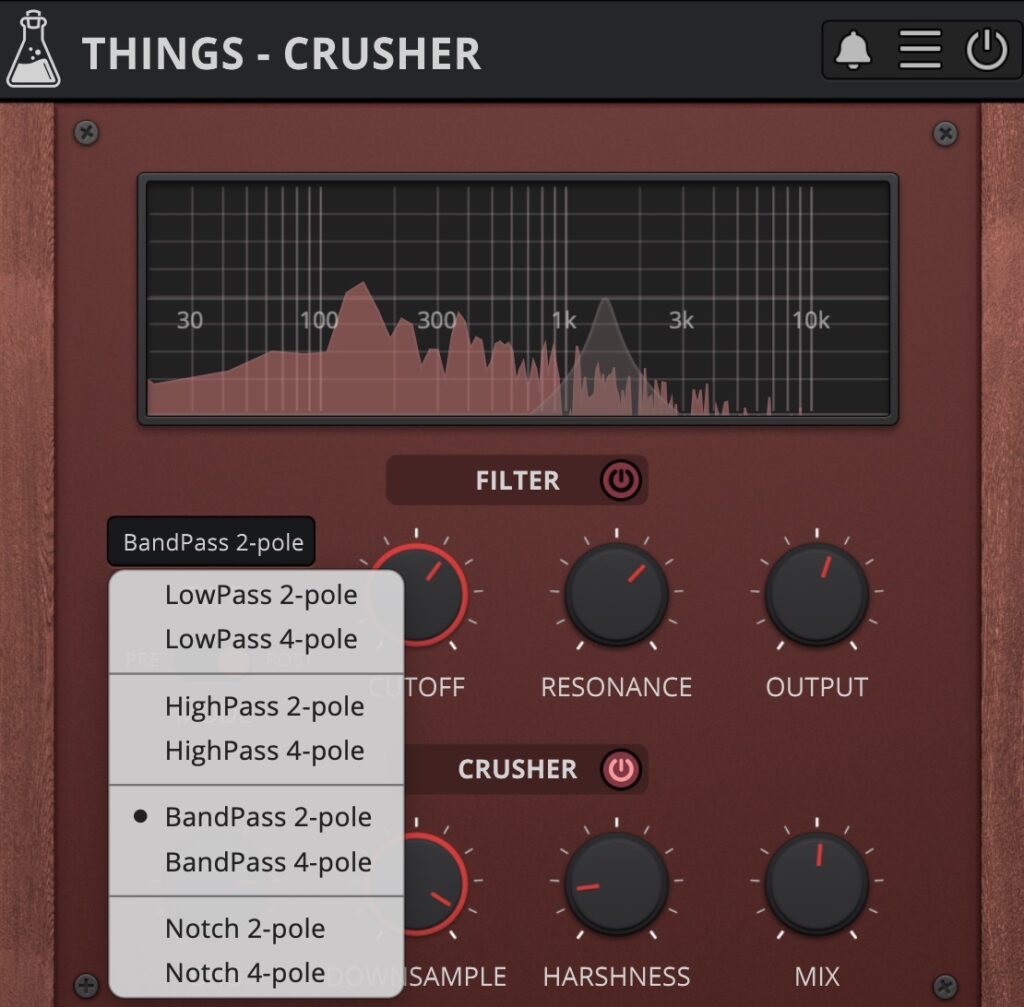 「Things – Crusher」はAudioThingのフィルターとビットクラッシャーが付いたマルチエフェクトプラグイン。