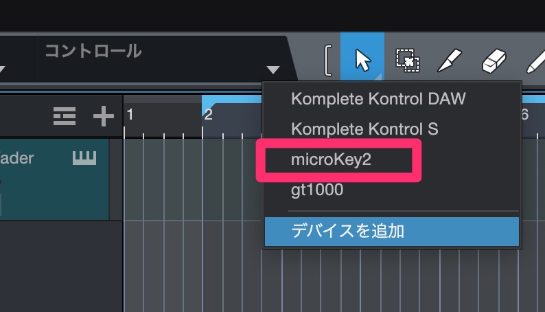 画面左上にあるコントロールから「microKEY Air」を選びます。