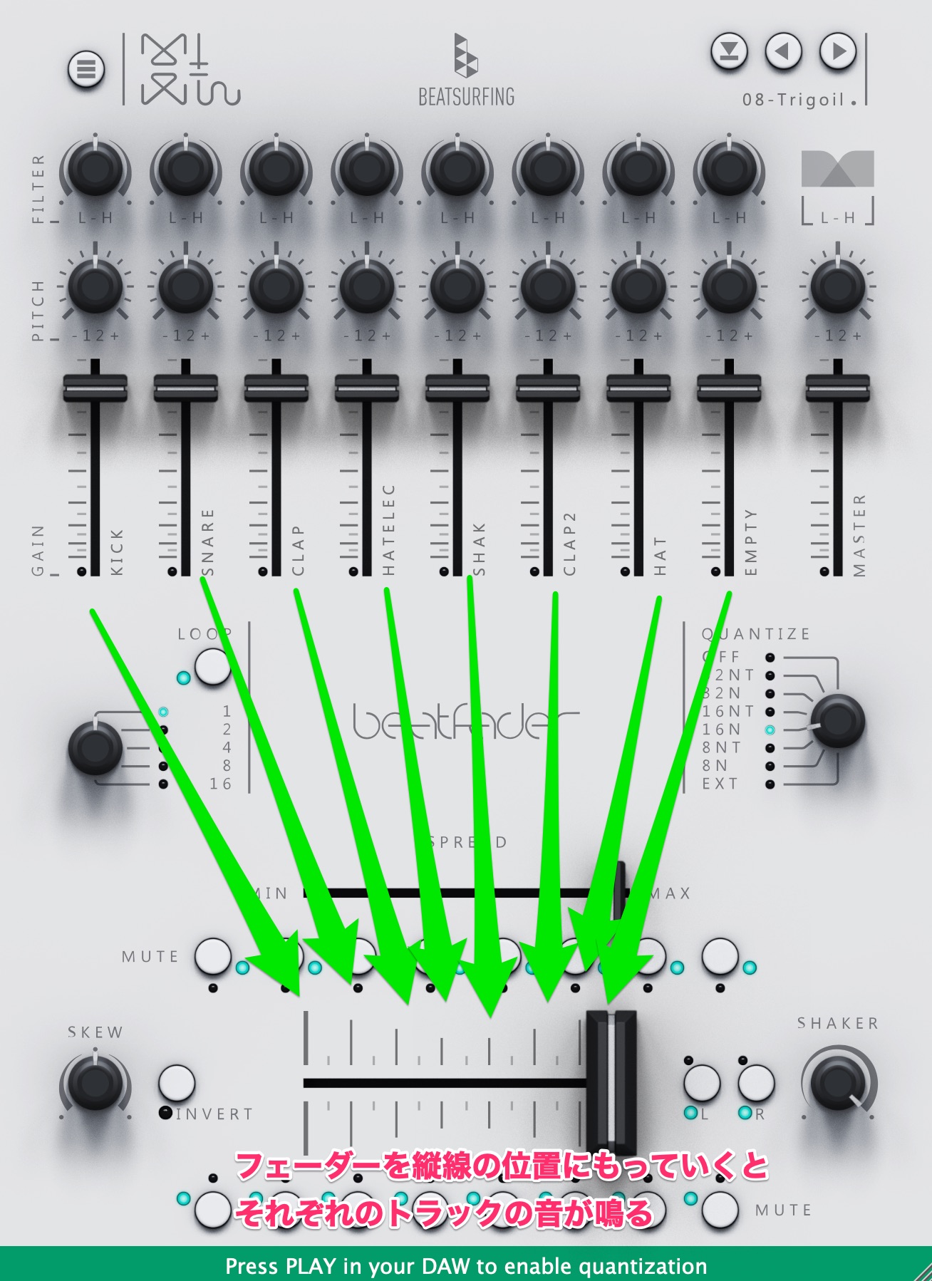 まったく意味がわからんという人は公式サイトBeatfaderページの中央にデモがあるのでフェーダーを動かしてみてください。