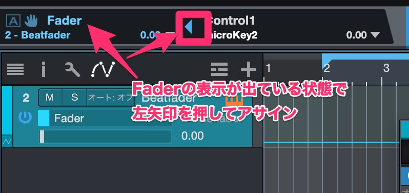 左上のオートメーション情報欄でFaderになっていることを確認したら