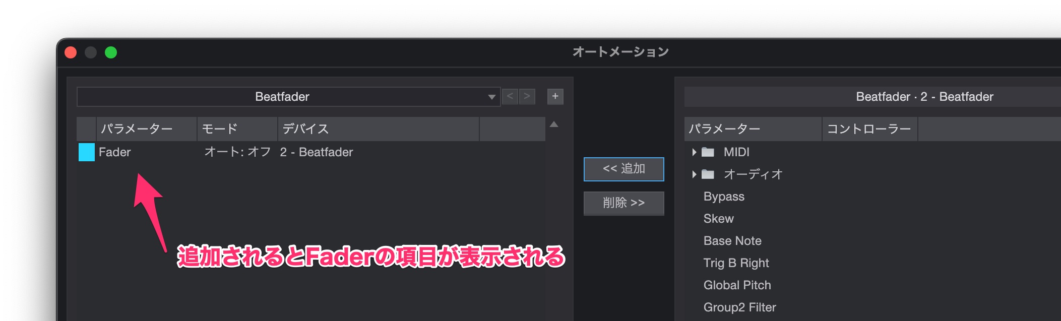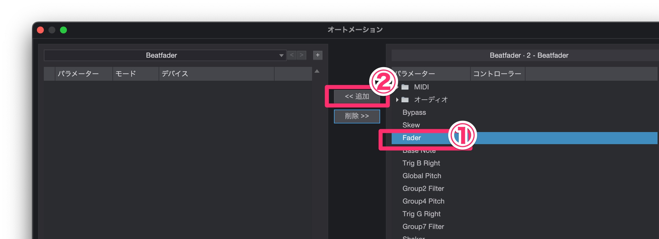 Beatfaderのノブ数に対応しているMIDIコントローラーがあれば良いのですが、持っていない場合にはDAWの設定で一つ一つ行う必要があります。