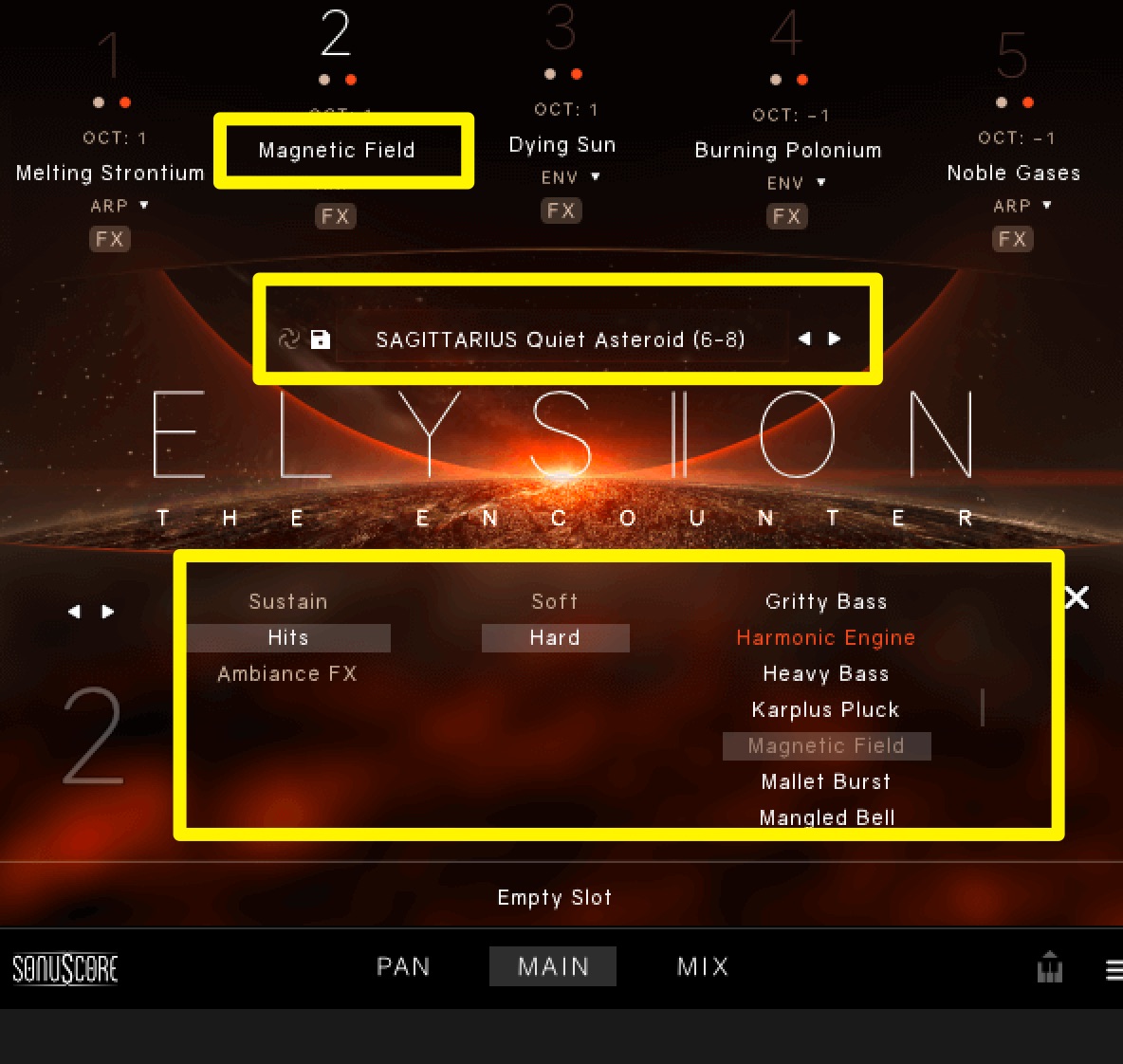 『ELYSION 2』に収録されている418種類のプリセットは、宇宙にちなんだネーミングの「テーマ」によって大まかにカテゴライズされています。