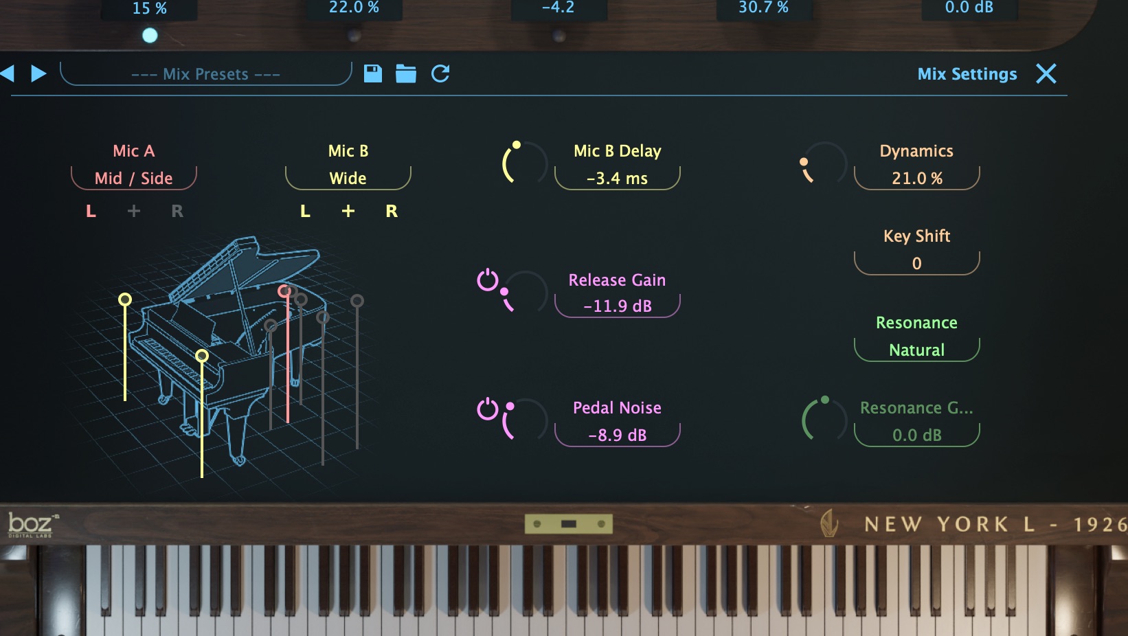 一般的な9フィートのコンサートグランドピアノのサンプリングではなく、長さは6フィート弱の大きさです。