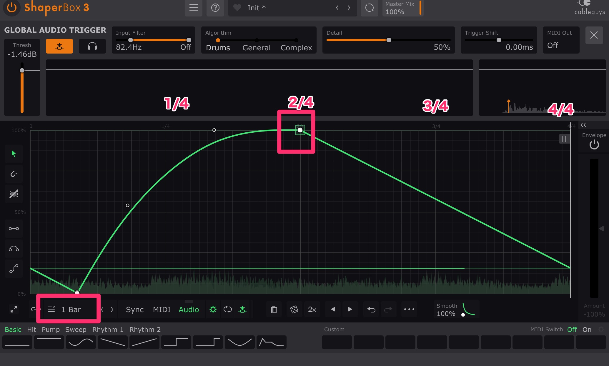 ShaperBoxは一定の小節数をループしてエフェクトがかかる仕組みです。