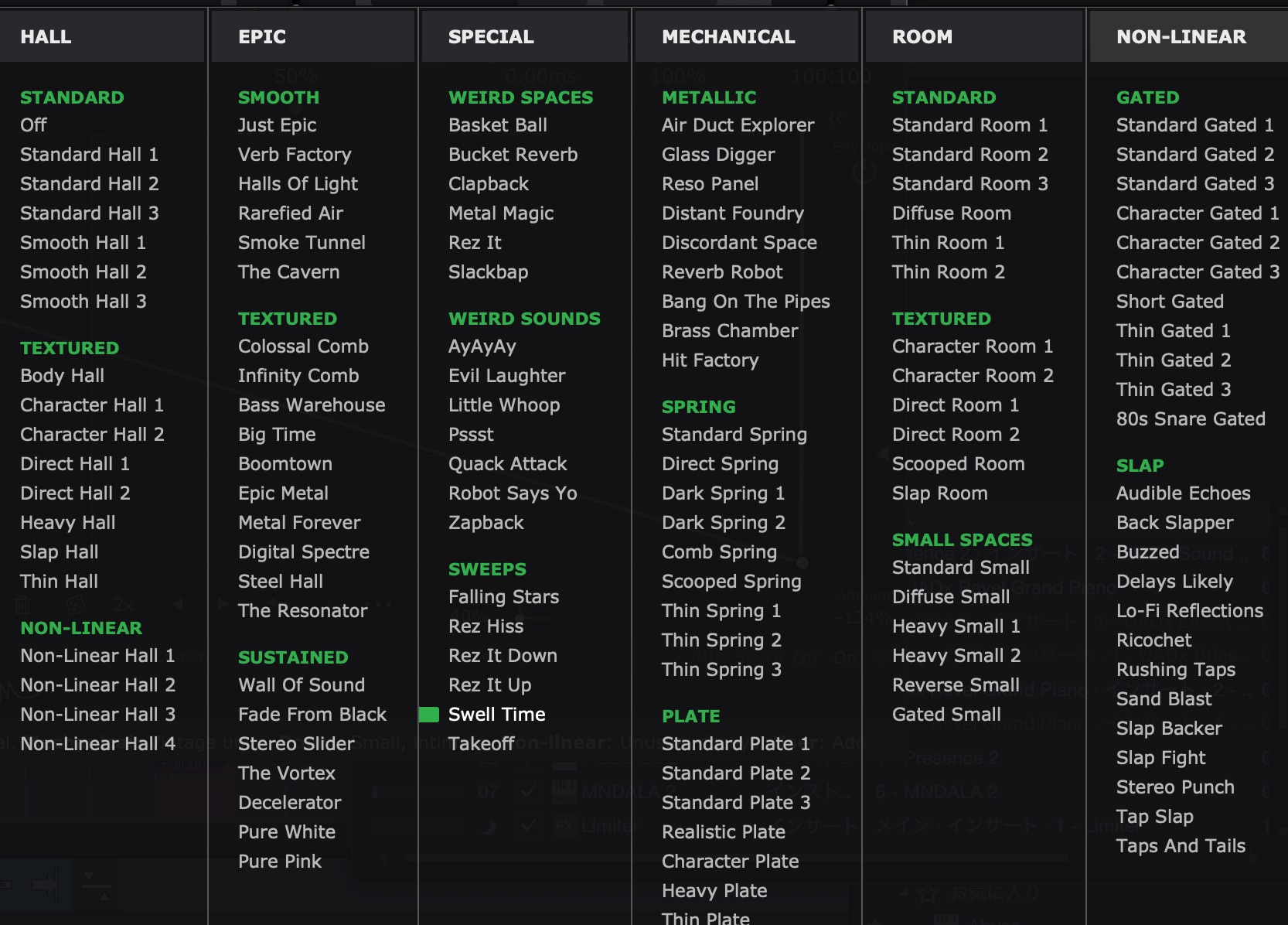 ReverbShaper で使えるリバーブ一覧