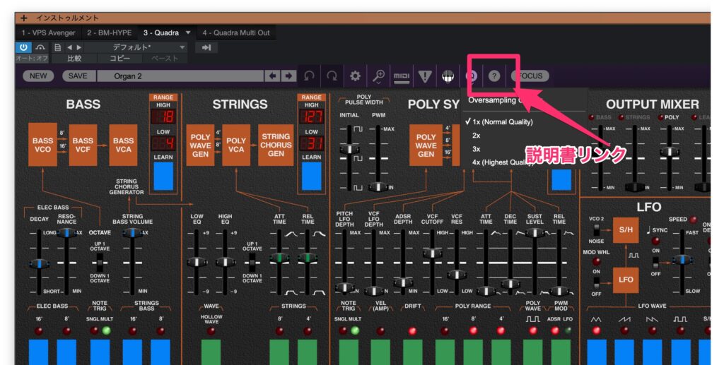 AvengerSpireのような現在のシンセと弾き比べるとやはり迫力満点とは行かないのですが、ヴィンテージアナログシンセにしか出せない特殊な音があり「Quadra」は実機とほぼ変わらないクオリティで再現できます。