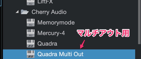 アフタータッチを使ったタッチセンサー、Quadraの4つのシンセセクションをマルチアウトすることもできます。マルチアウトする際はQuadra Multi Outの音源を使います。