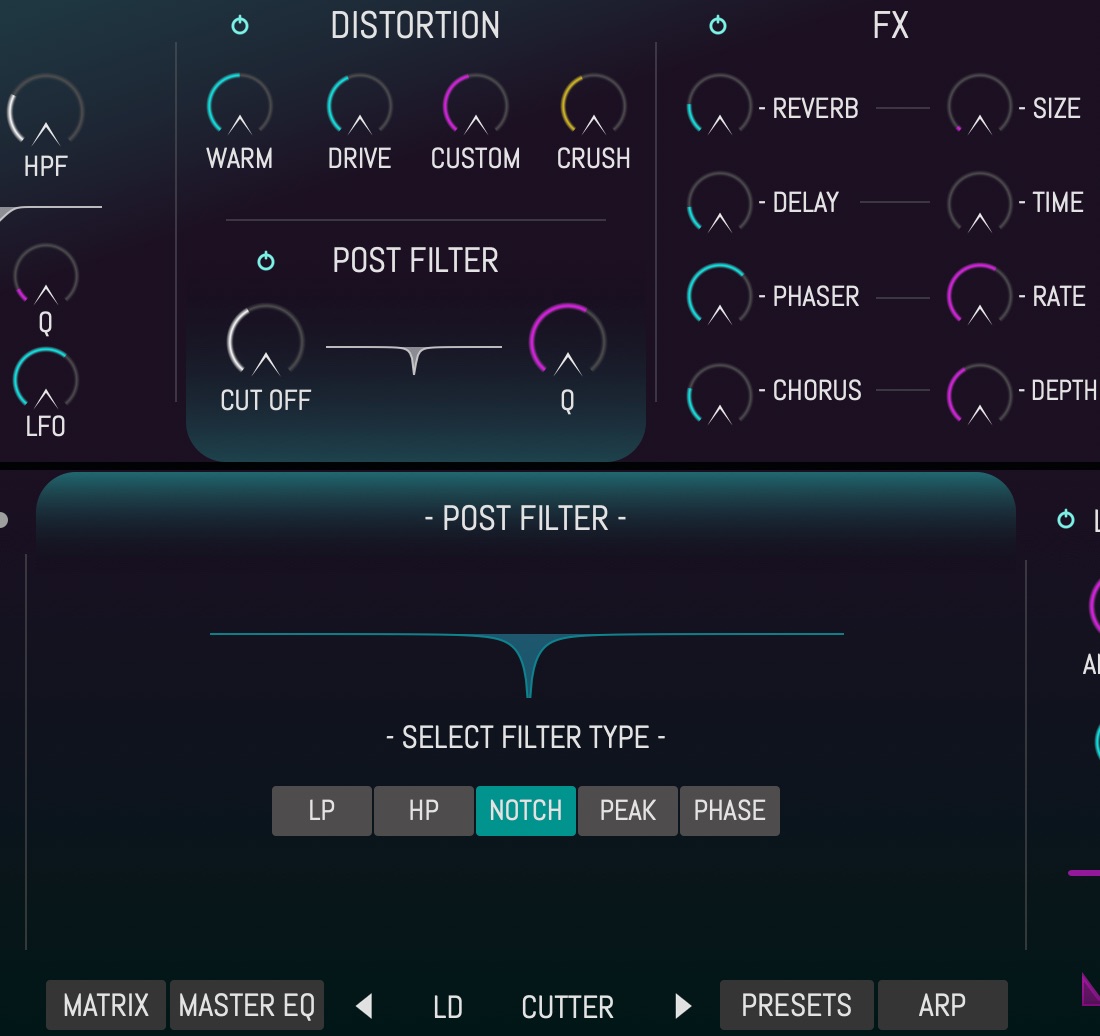 POSTフィルターはディストーションセクションで行います。