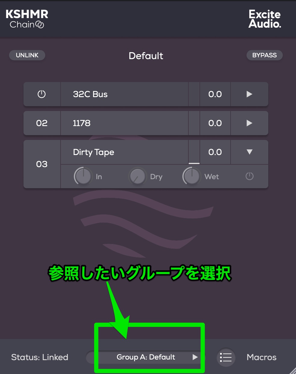 「Chain Leader」の画面下に表示されている「Group○」と同じグループを「Chain Follower」側で設定します。