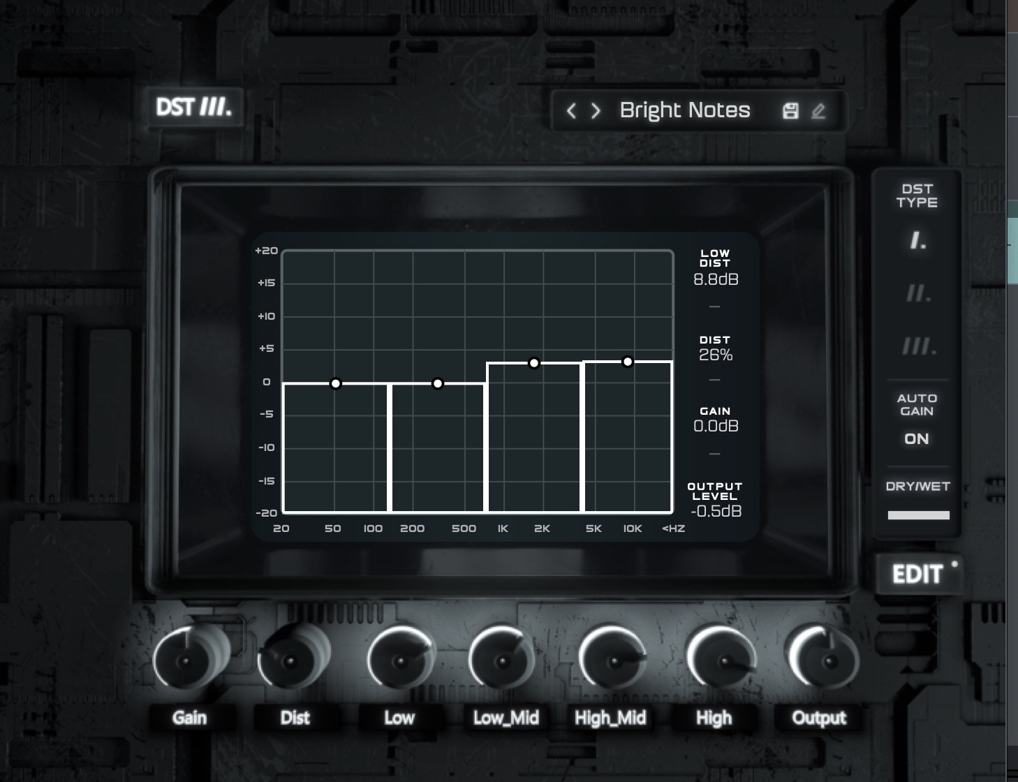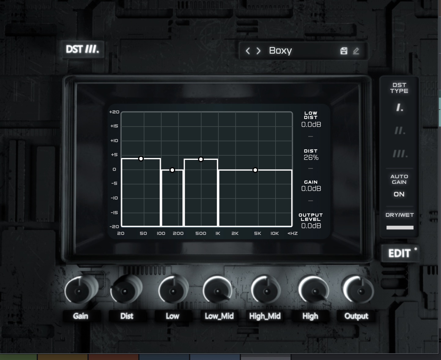 DST は、市場にあるものとは異なる革新的なディストーション アルゴリズムを備えた次世代のマルチバンド ディストーション プラグインで、最も新鮮なサウンドを作成するのに役立ちます。