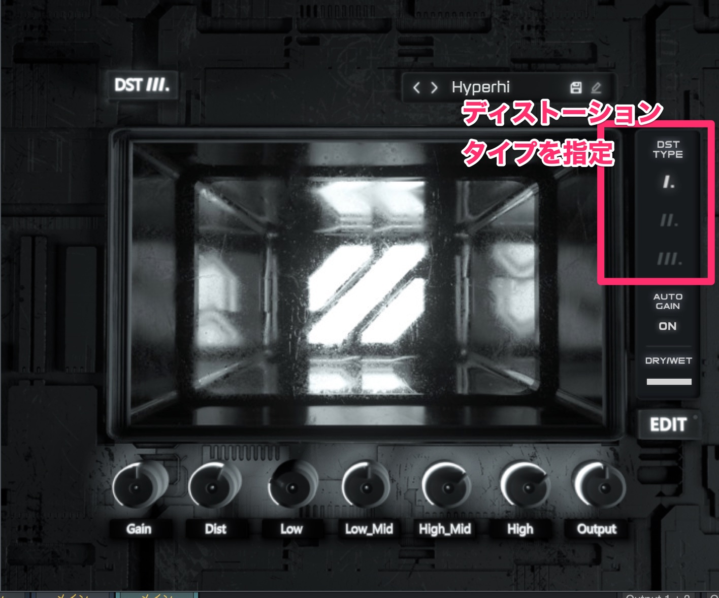 ・ディストーションタイプが3つ ( 1: normal / 2: 少し明るいトーン / 3:一番歪む)