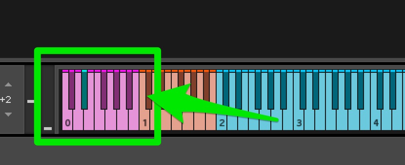 この音源ではC0~B0までのkeyスイッチでフレーズをトランスポーズできるのが利点となっています。