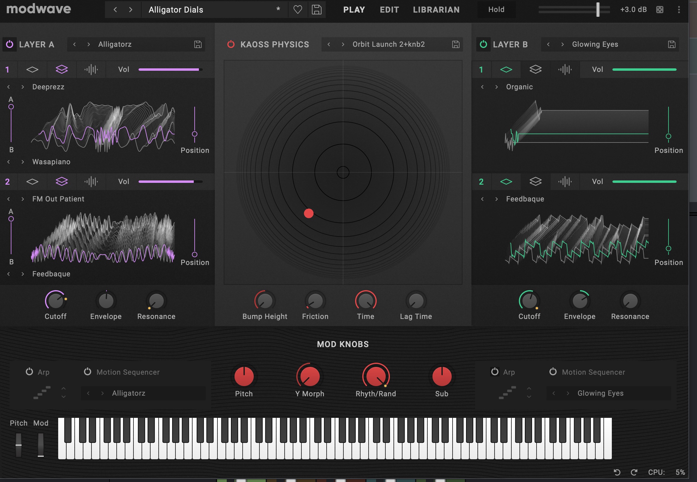 Kaoss Physicsと呼ばれているXYPADで直感的に操作し変調先を制御することで今までのシンセとは比べ物にならないほどの音の変化を楽しめます。