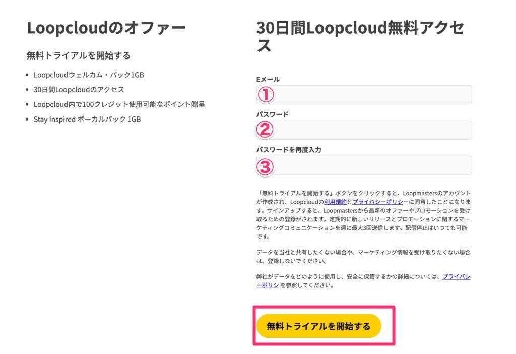 こちらのボタン↓からLoopcloudのサイトを表示させます。
