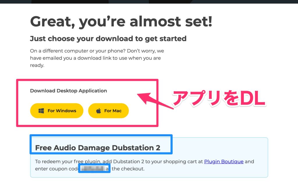 なお下にある「Free Audio ****」に表示されているクーポンコードは