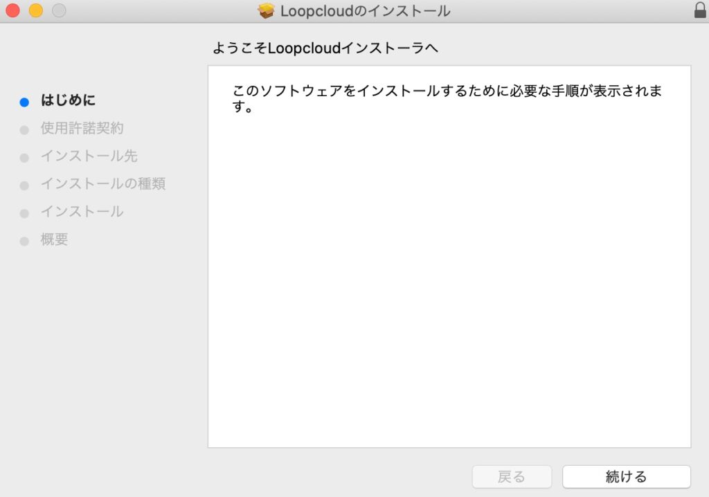 ダウンロードしたLoopcloudのデスクトップアプリをインストールします。