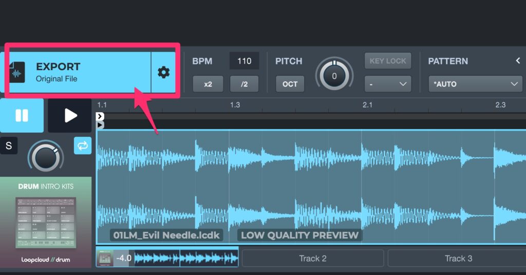 ダウンロードしたサンプルはドラック&ドロップでDAWのトラックへエクスポートができます。(購入済みになっていないとエクスポートできません)