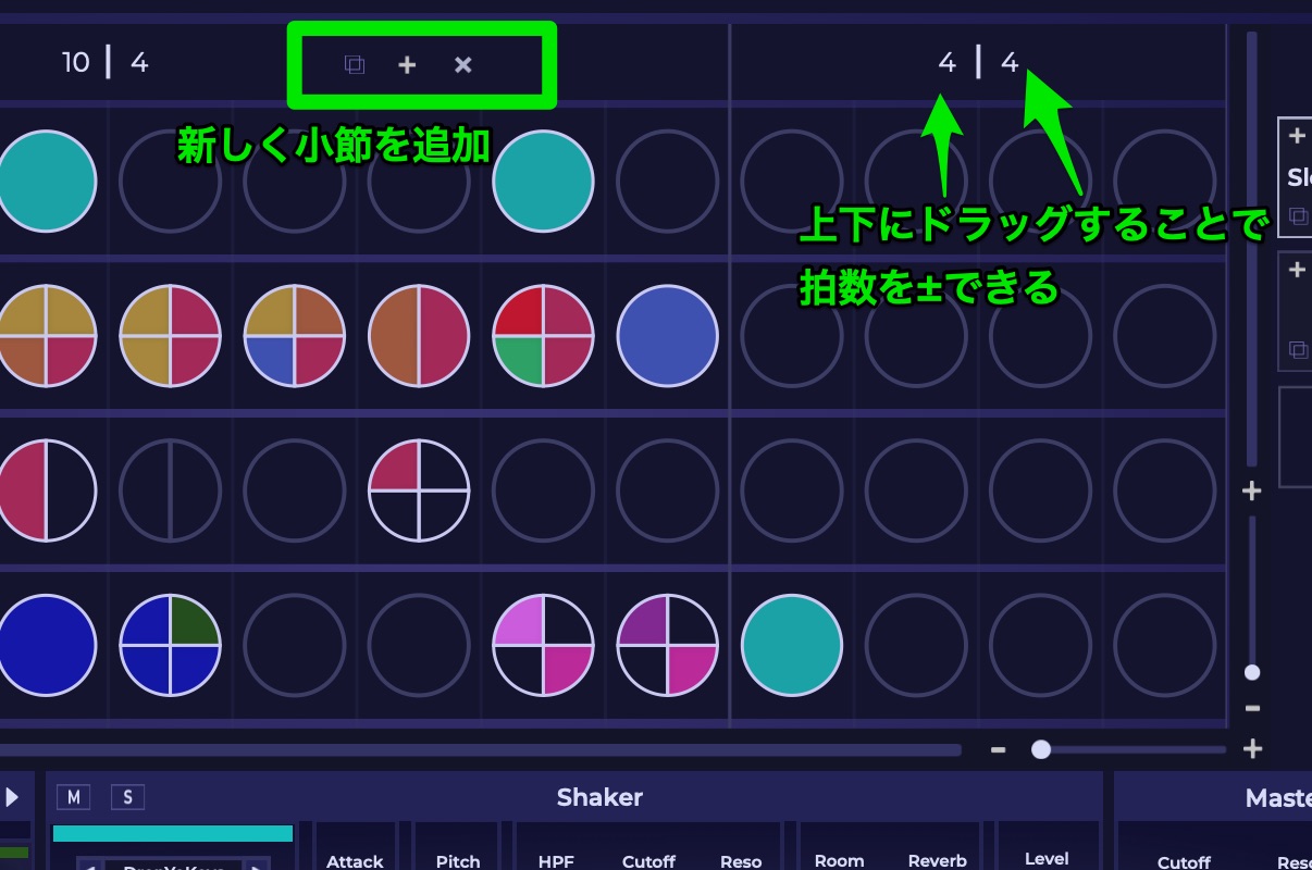 ここの操作は特殊なので、拍数を変更できないよ!と悩んでいる場合は操作を覚えましょう。