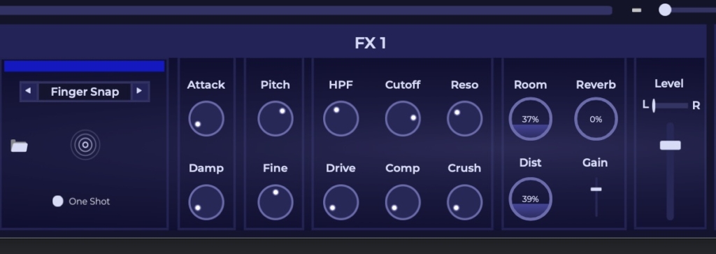 サンプラーセクションでは鳴らす楽器にフィルターやエフェクトを使って個別に編集ができます。