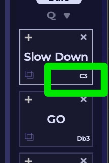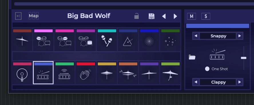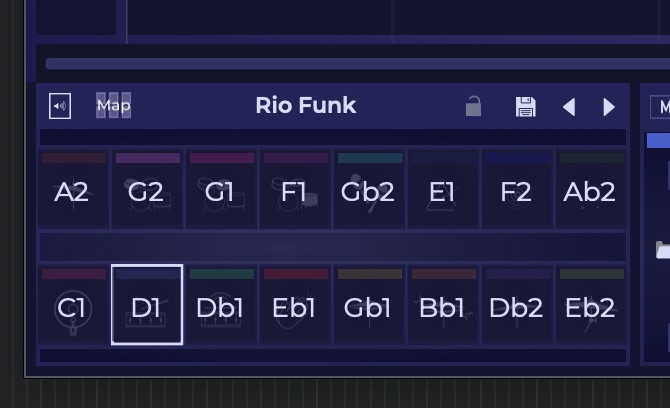 「Map」を押すとマッピング設定されているMIDIノートが表示されます。