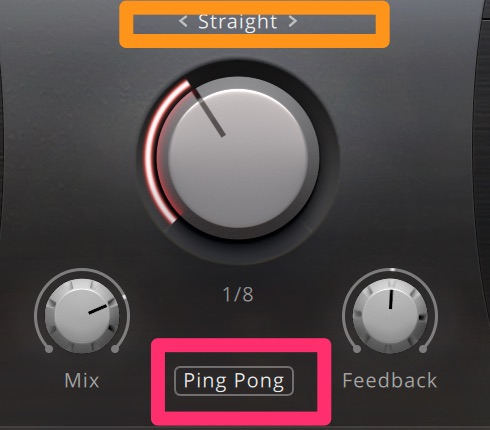MixとFeedbackの間にあるボタンでディレイの広がりを設定