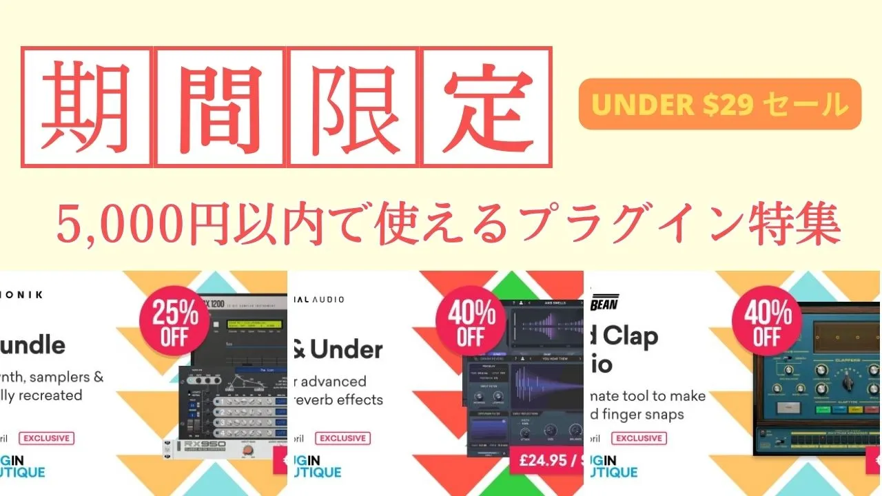 5,000円以内で購入できる激安DTMプラグインセール!Plugin Boutique “$29 and Under Sale”:(4/21まで)