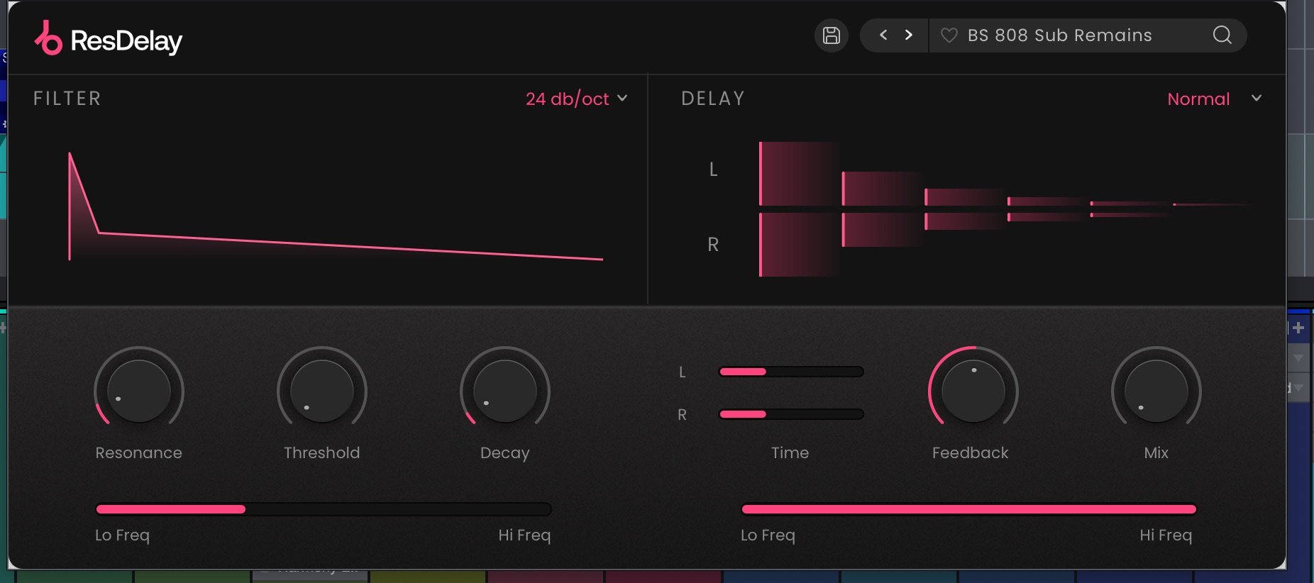 スイープパターンとリズミカルパターン用のエンベロープフィルターとステレオディレイを組み合わせたマルチFX。