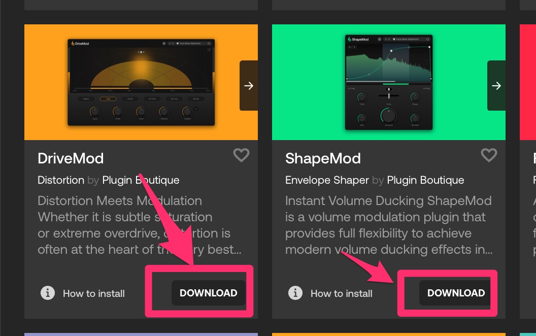ダウンロードしたいプラグインを見つけたら「DOWNLOAD」を押して