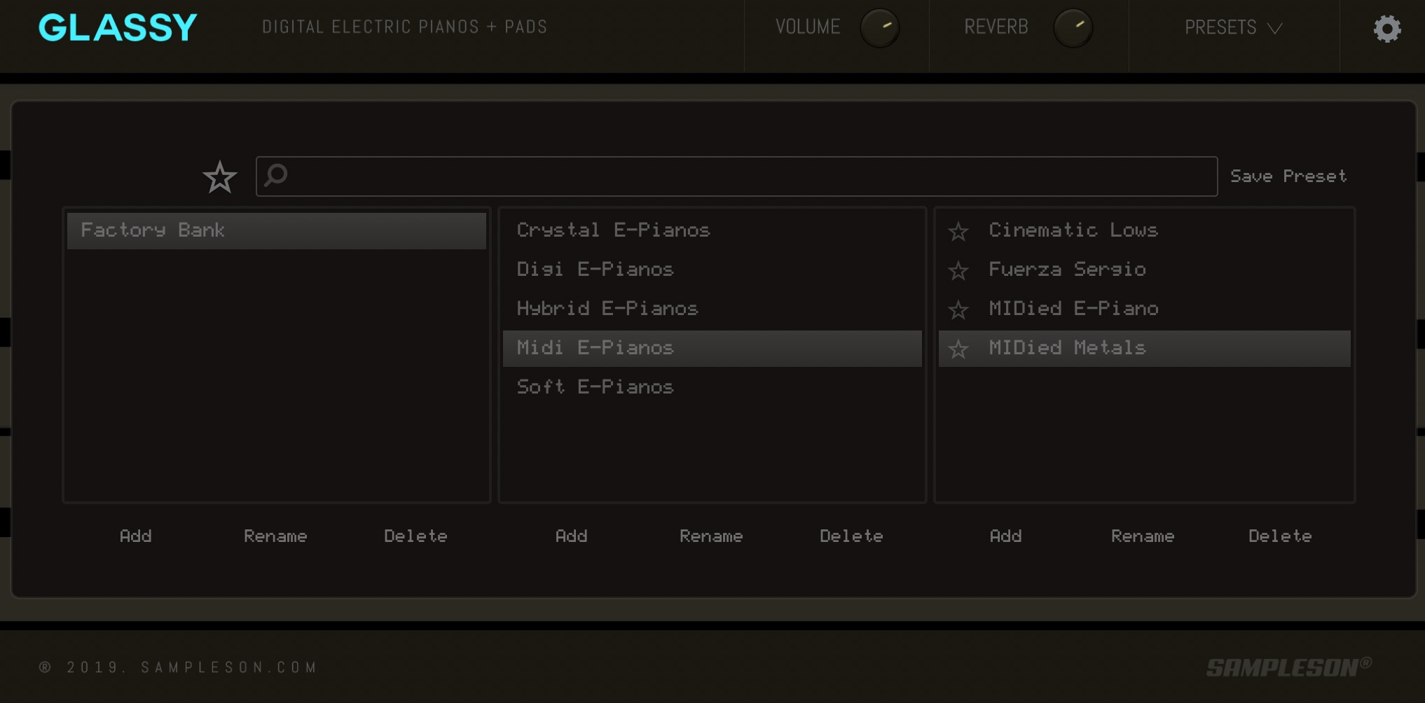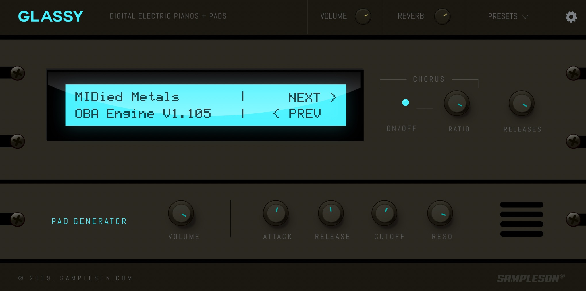 この「Sampleson Glassy」は80年代後半~90年代のデジタルピアノの音を再現したエレピ音源。