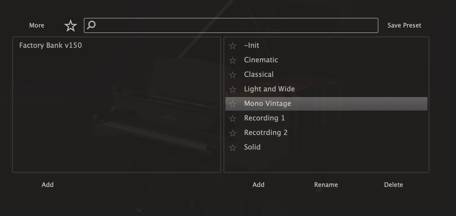 他のピアノ音源よりもノブが少なく,設定に時間を費やさずに済む単純な所は良い点です。