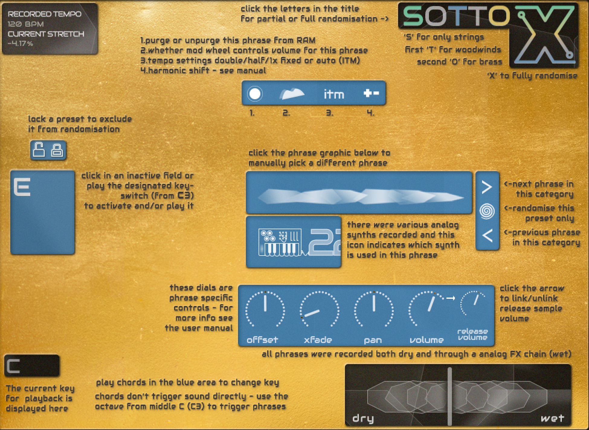 『Sonokinetic Sotto X』を使う上で注意事項として、Sotto Xは個別のノート演奏はできず、収録済フレーズを鳴らす音源です。