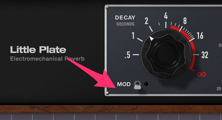 また微妙なさじ加減ですがMODのスイッチを押すと、リバーブテイルにモジュレーションがかかります。