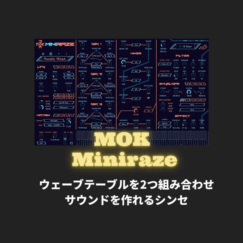 「MOK Miniraze」ウェーブテーブルを2つ組み合わせ サウンドを作れるシンセ