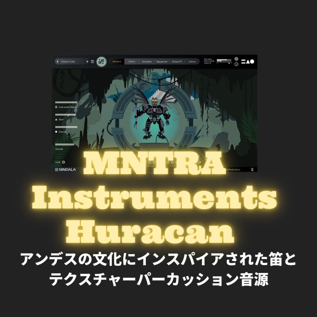 Huracan とは? 「MNTRA Instruments Huracan 」はメオソアメリカとアンデスの文化にインスパイアされた笛と打楽器の音源。 MNTRA Instrumentsは独特な音源をリリースし続けていて、今作もまた独自路線を貫いている音源になっています。 「Huracan 」では... -