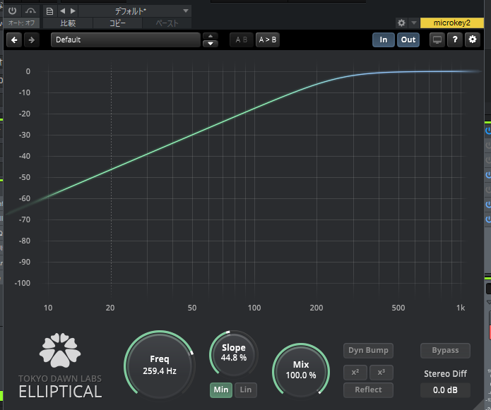 極端にバッサリローカット処理を行うのではなく、なだらかにカットして低域の出方をすっきりさせるフィルター。