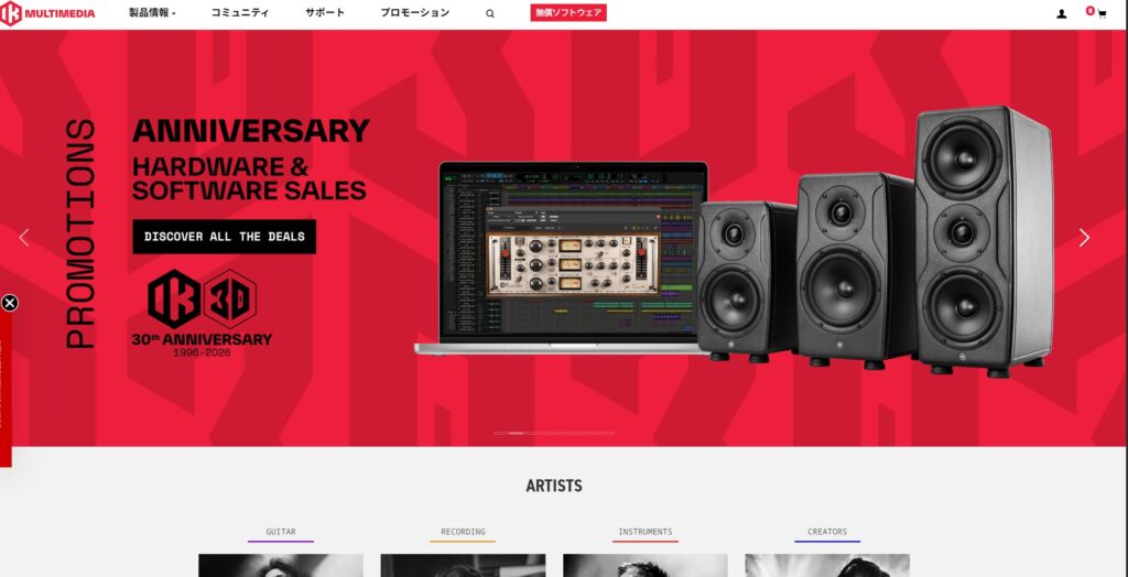 [!NOTE] IK Multimedia(アイケー マルチメディア)とは:1996年設立のイタリアのソフトウェアメーカー。「誰でも音楽制作を楽しめるように」という理念のもと、高品質でわかりやすい楽器・エフェクトソフトを世界中に提供してきた実績のある会社です。スマートフォン向けのアプリから本格的なスタジオ向けのソフトウェアまで、幅広い製品を展開しています。