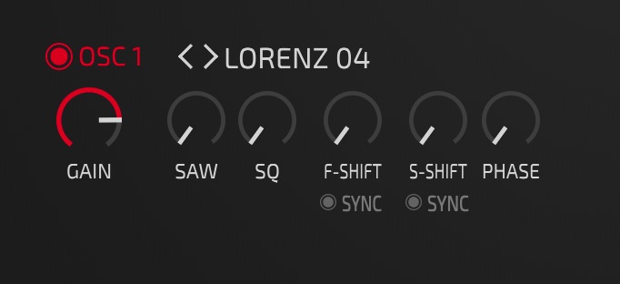 オシレーターの選択で表示されている図形は「ストレンジ・アトラクター」をベースにしたもので、視覚的にオシレーターの音を再現しています。