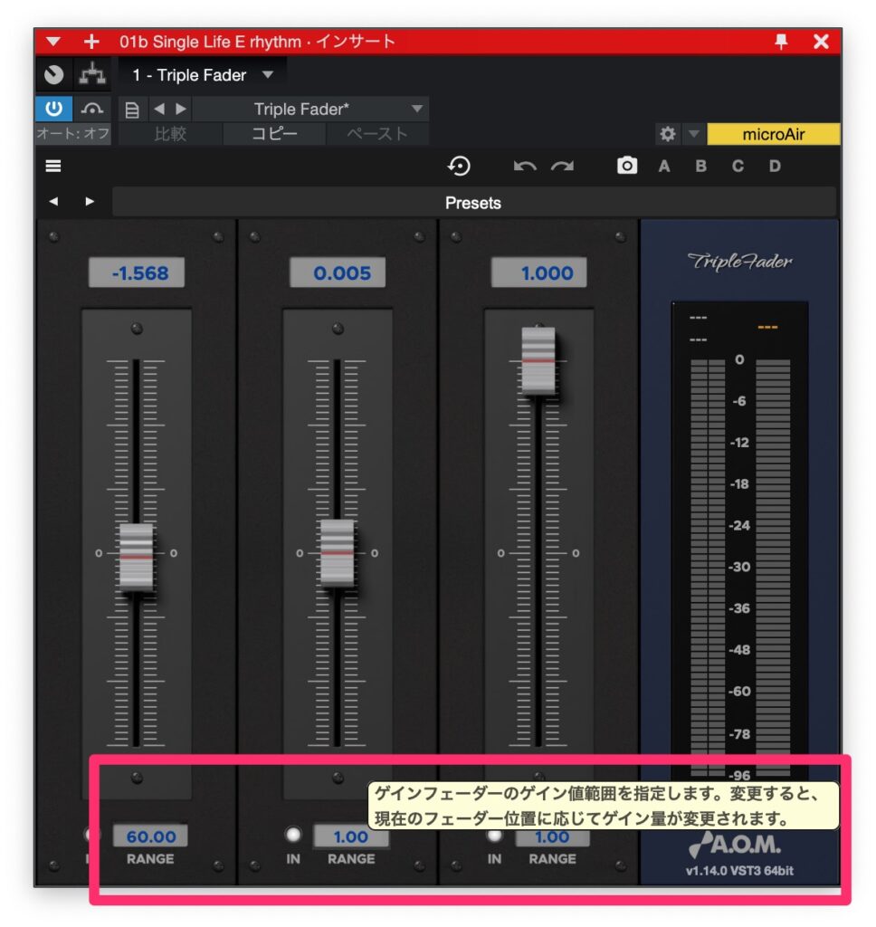 【無料】「Triple Fader」ゲインフェーダー3基を調整できる便利プラグイン