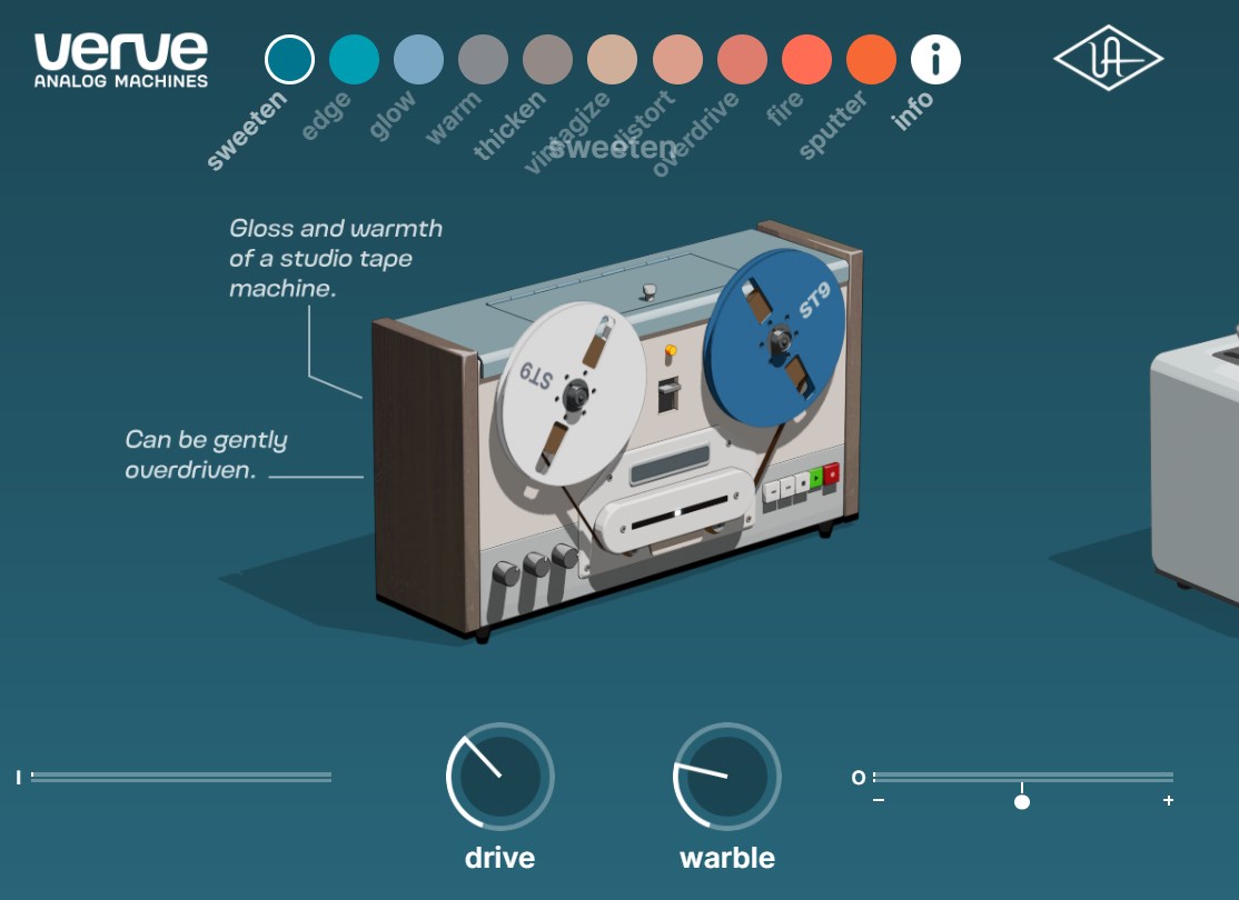 Universal Audioといえば、実在したヴィンテージ機材を精巧にエミュレートしていく技術が素晴らしい老舗メーカーですが、今作のVerve Analog Machinesはエミュレートのコピーが無く、オリジナルなテープマシンプラグイン。