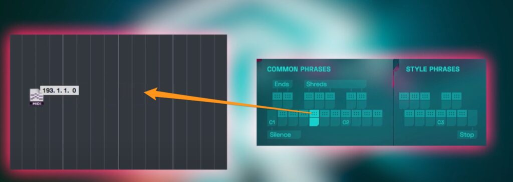 VIRTUAL GUITARIST、VIRTUAL BASSIST、VIRTUAL DRUMMER、BEATMAKERシリーズはドラック&ドロップで演奏パターンをDAWのトラックへエクスポートできます!(・・・がついている鍵盤の場所をドラック&ドロップ)