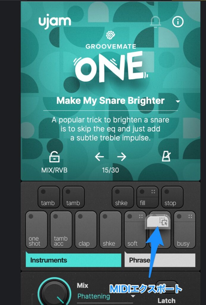 同時に鳴らしている楽器によってはリアルすぎるパーカッションだと曲中で浮いてしまうことがありますので、バリエーションの一つとしてGroovemate ONEを持っておくと重宝します。