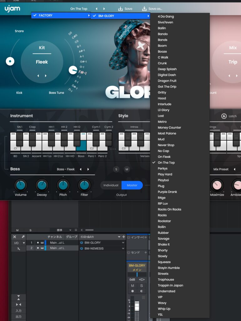 打ち込んでいる間に、創作意欲がなくなることもありますしね。UJAMは出音もしっかりしてますし、UJAM Beatmaker シリーズのサウンドをデモ用で差し込むだけで作曲中のテンションも上がります。