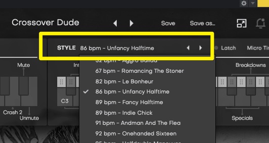 プリセットを切り替えるとドラムスタイルも変わってしまうので、お気に入りのパターンを使っている場合は、不用意にプリセットを切り替えないほうが良いです。