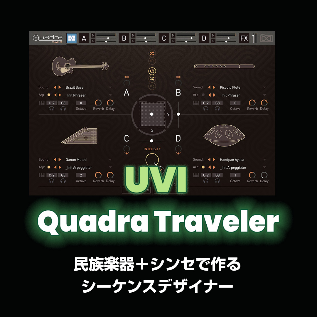 「Quadra Traveler」はUVIによるマルチインストゥルメント&シーケンスデザイナーである「Quadraシリーズ」の音源です。