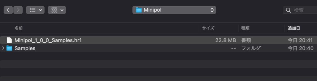 インストーラーに入っていた「Vapor Dimension_1_0_0_Samples.hr1」のファイルを指定します。