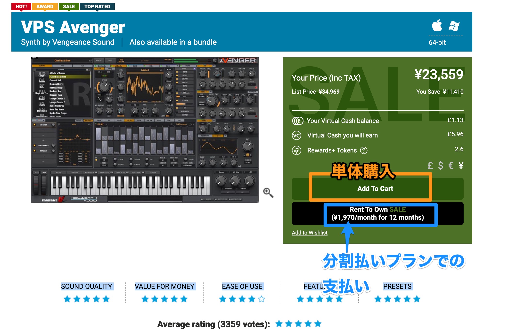 Rent to Ownでプラグインを購入する場合、金利や追加料金はかかりません。